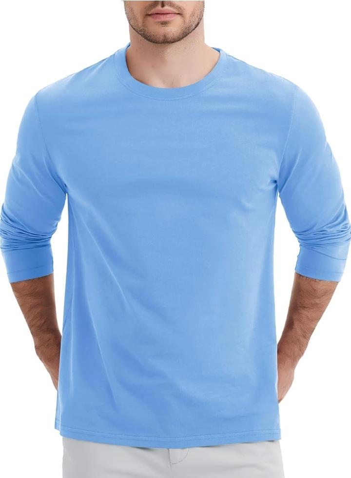 These Men's Light Blue Round Neck Long Sleeve Shirts are always a cool-weather favorite. Make a statement with the regular fit design of this classic t-shirt, designed to enhance your physique, and complete your stylish ensemble.
