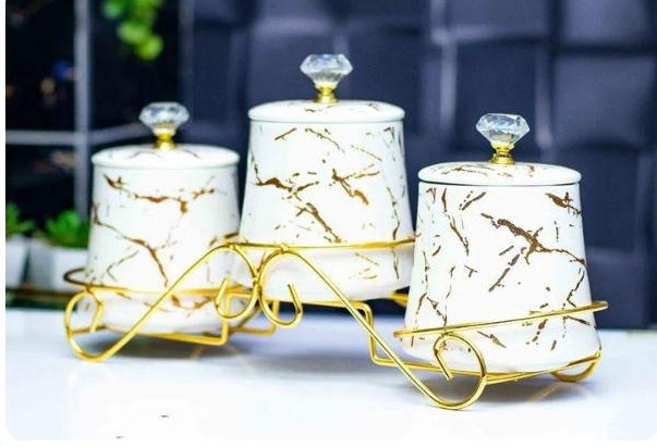 canister set ✅3 marble Canister ✅ 1 Golden stand
